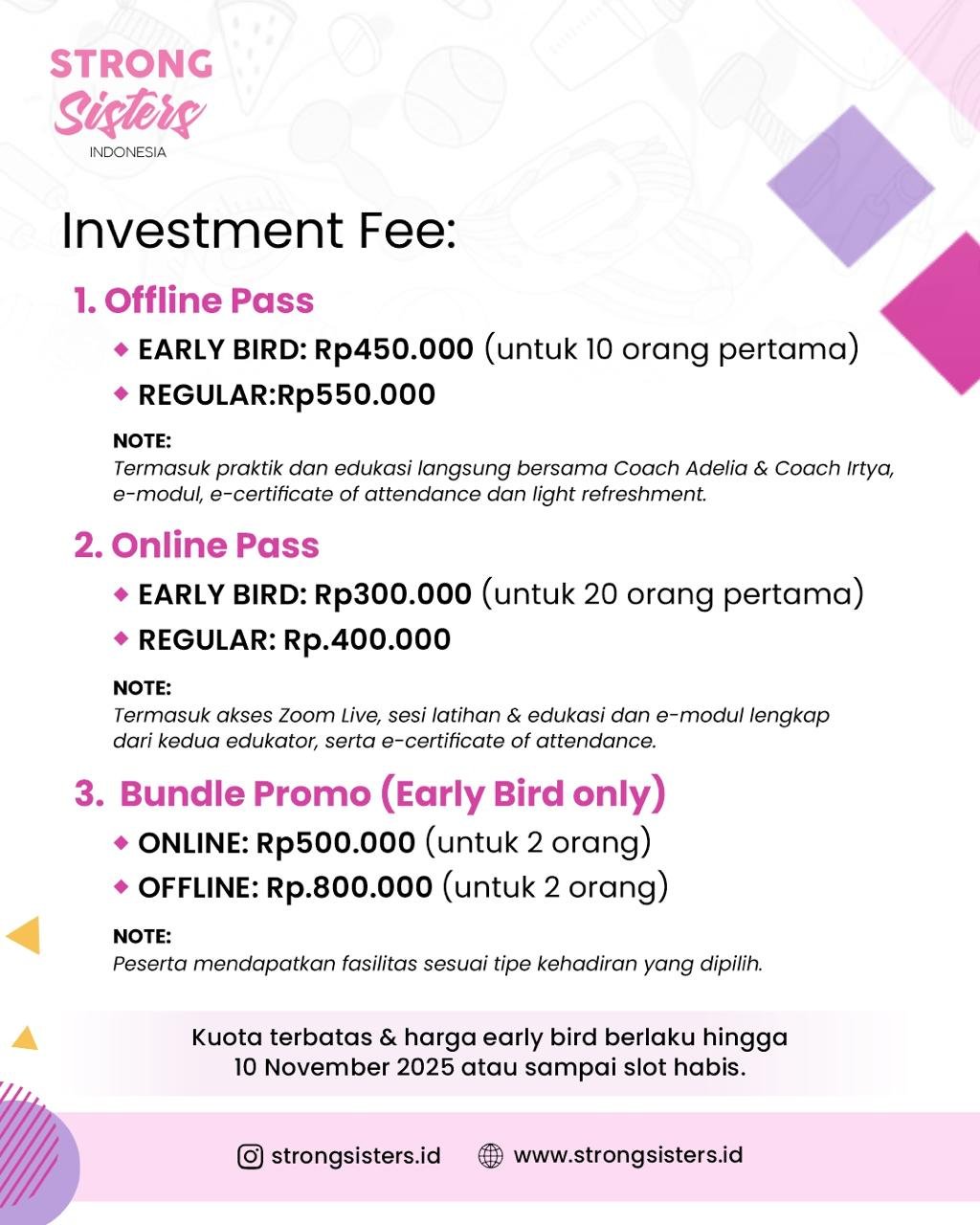 * Early Bird: Rp 450.000 (hingga 10 November 2025 atau 10 peserta pertama)